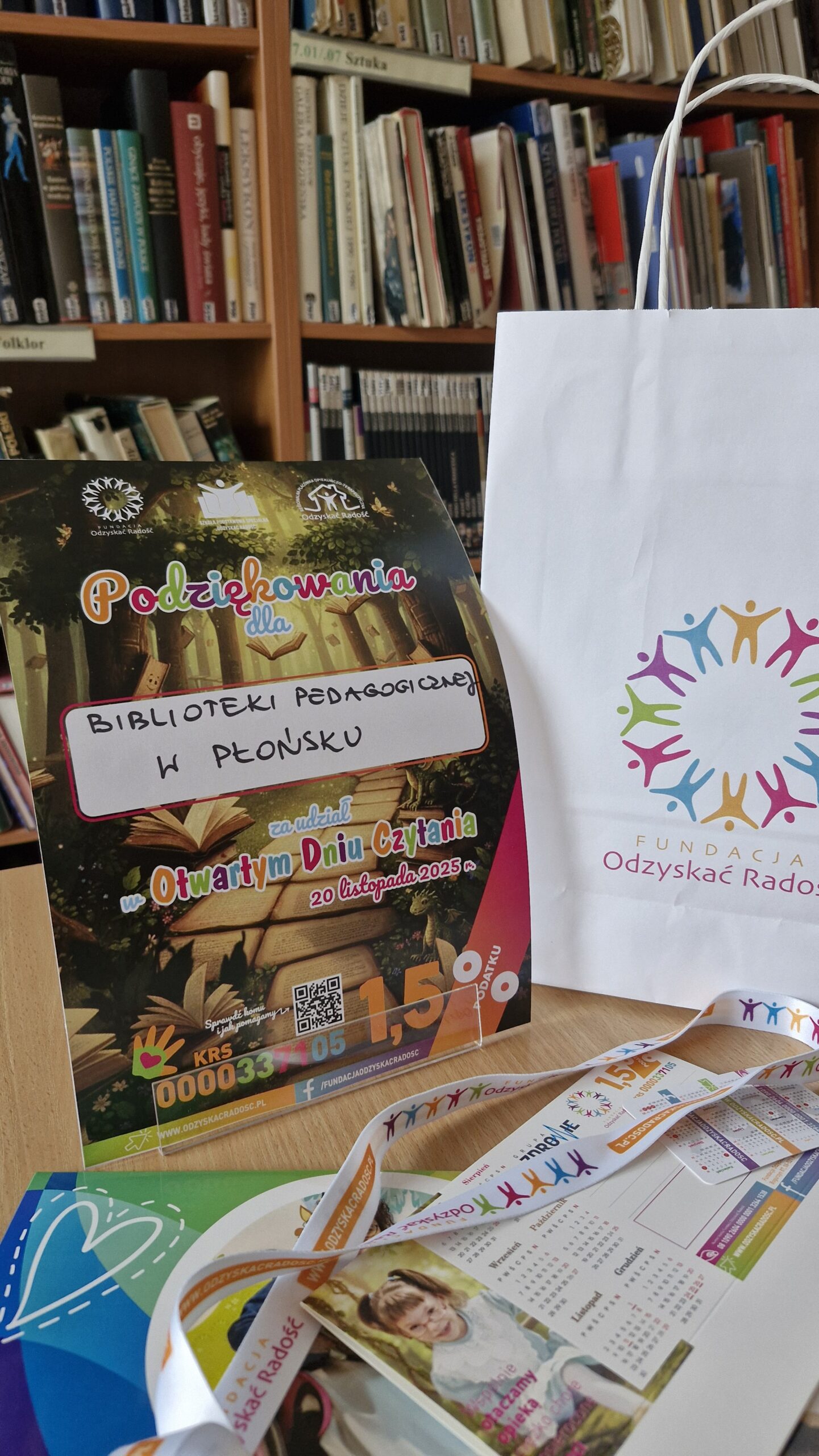Uczniowie szkół podstawowych w Goławinie i Czerwińsku nad Wisłą odkrywali w tym czasie terapeutyczną moc słów i literatury. W działaniach wzięło udział 51 uczniów oraz 8 nauczycieli i terapeutów. Podczas warsztatów uczestnicy tworzyli autorskie karty z cytatami z książek i bajek – małe obrazy pełne wsparcia, otuchy i dobrej myśli. Powstało 115 kart, które podczas Otwartego Dnia Czytania przekazano podopiecznym Fundacji „Odzyskać Radość” w Kraszewie-Czubakach.