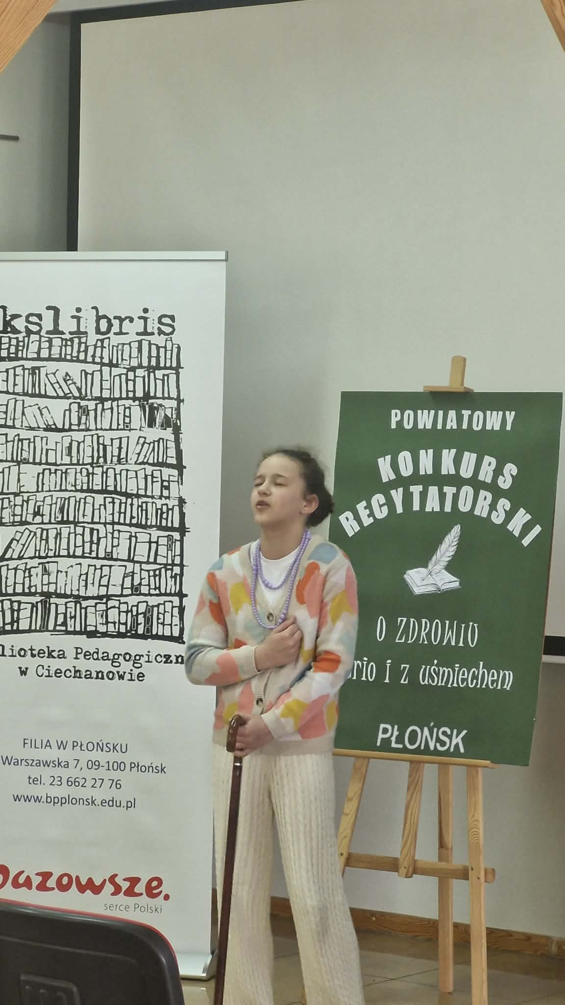 25 marca Biblioteka Pedagogiczna zorganizowała konkurs recytatorski „O zdrowiu – serio i z uśmiechem”. Była to już XXI edycja konkursu recytatorskiego, który organizujemy z okazji Światowego Dnia Poezji. Tegoroczny temat konkursu nawiązuje to jednego z kierunków polityki oświatowej państwa na bieżący rok szkolny. W konkursie wzięło udział 16 uczniów z 9 szkół powiatu płońskiego. Zmagania konkursowe oceniało jury w składzie: Wioleta Ciulińska – wiceprezes Banku Spółdzielczego w Płońsku, Ewa Cichewicz – prezes ZNP oddział w Płońsku i Katarzyna Myszyńska – nauczyciel bibliotekarz z ILO w Płońsku. Jury dokonało następującego wyboru :