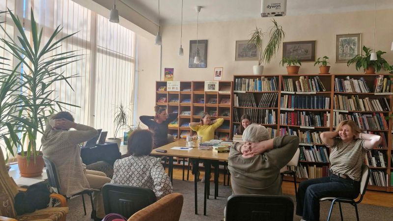 Tegoroczne spotkania sieci współpracy dla nauczycieli bibliotekarzy koncentrują się wokół obszaru jakim jest dobrostan nauczyciela. Kolejne więc spotkanie zatytułowane „Siła oddechu”, miało charakter praktyczny i było poświęcona ćwiczeniom oddechowym oraz technikom relaksacyjnym, które mogą być wykorzystywane zarówno przez nauczycieli, jak i uczniów, ale też wszystkie osoby spędzające dużo czasu w pozycji siedzącej. Do poprowadzenia spotkania zaprosiliśmy panią Beatę Michalak, nauczycielkę wychowania fizycznego w ZS nr 2 w Płońsku, osobę pełną energii, która sama prowadzi aktywny i zdrowy tryb życia. Zaprezentowała nam proste, ale skuteczne metody redukcji stresu, poprawy koncentracji oraz wyciszenia emocji. Uczestnicy aktywnie brali udział w proponowanych ćwiczeniach, ucząc się świadomego oddychania i sposobów rozluźniania napięcia w ciele. Prowadząca podkreśliła, jak ważne jest wprowadzanie krótkich przerw relaksacyjnych w codziennej pracy szkolnej, co może pozytywnie wpływać na atmosferę w klasie oraz samopoczucie wszystkich osób zaangażowanych w proces edukacyjny.