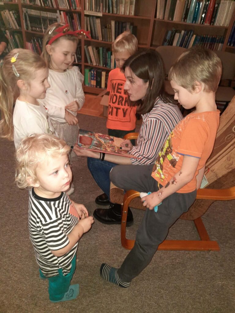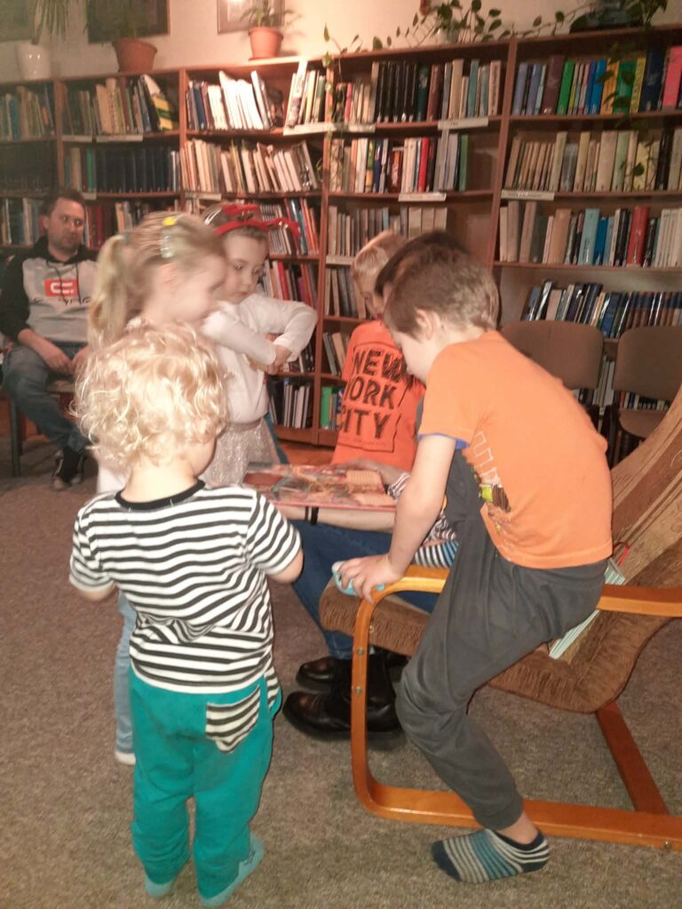 Podczas grudniowego spotkania z cyklu „Zaczytani przy kominku”, na prośbę Świętego Mikołaja, przeprowadziliśmy rekrutację nowych elfów do pracy w najwspanialszej fabryki świata. Sześcioro kandydatów z pełnym powodzeniem zaliczyło wszystkie testy: sprawdzian uwagi podczas słuchania czytanych opowieści, sprawdzian delikatności przy oglądaniu książek, sprawdzian przeszukiwania magazynów, pakowania prezentów oraz ozdabiania pierników. Podczas rutynowej elfiej gimnastyki sprawdziłyśmy też w jakiej kondycji fizycznej są nasze nowe elfy. Nad prawidłowym przebiegiem testów czuwał zespół Biblioteki Pedagogicznej w Płońsku, jak również rodzice przybyłych rekrutów.