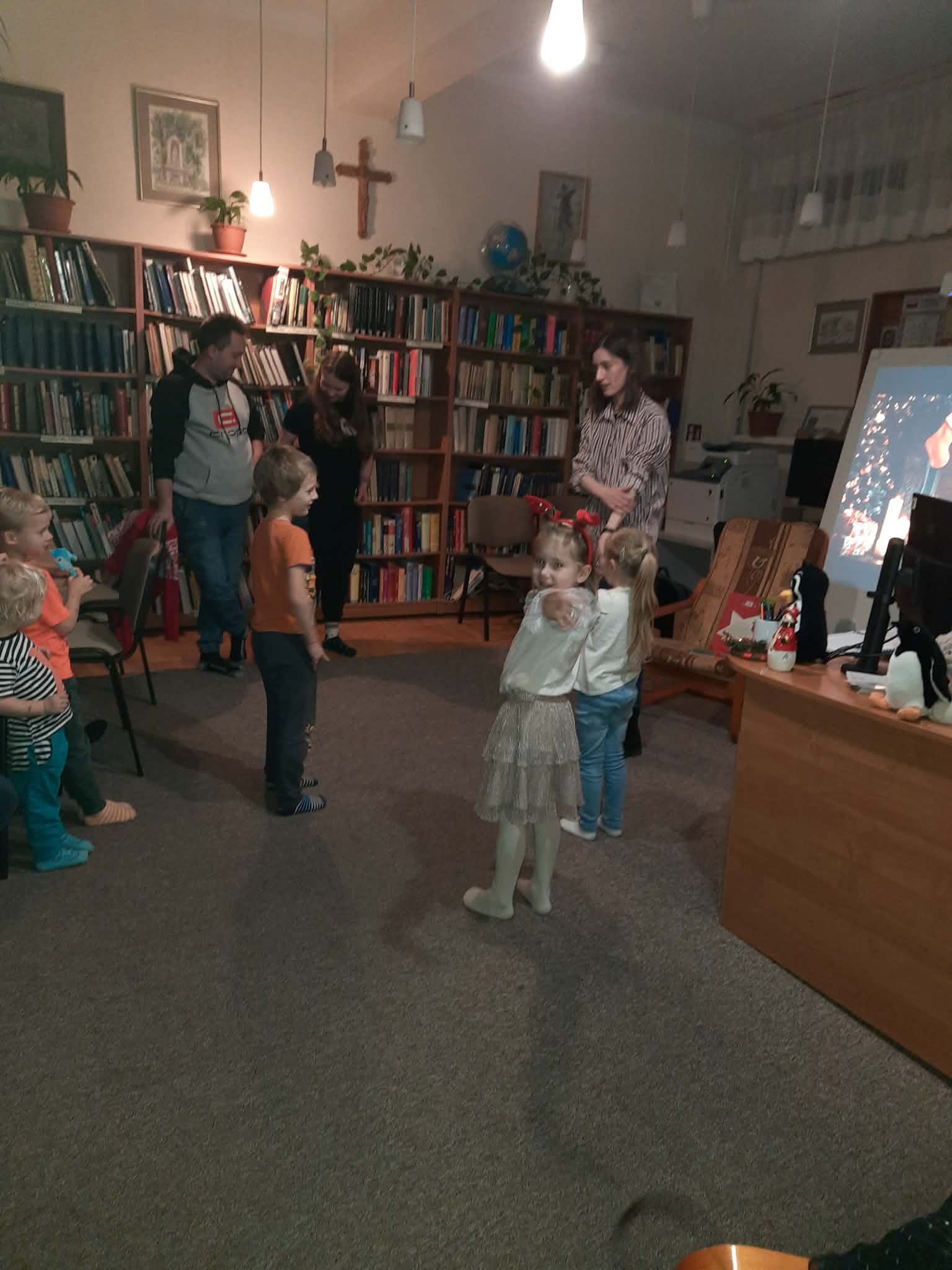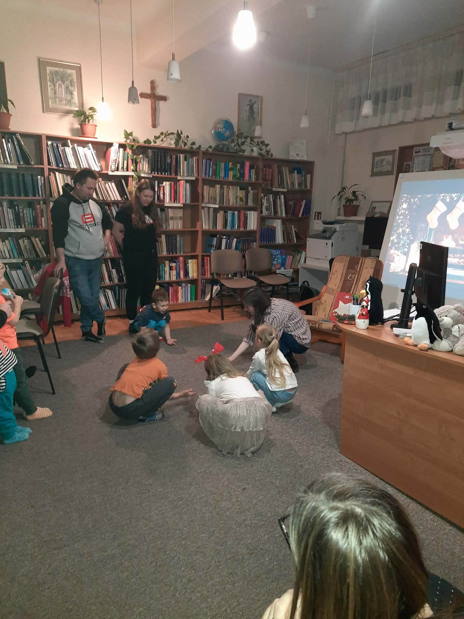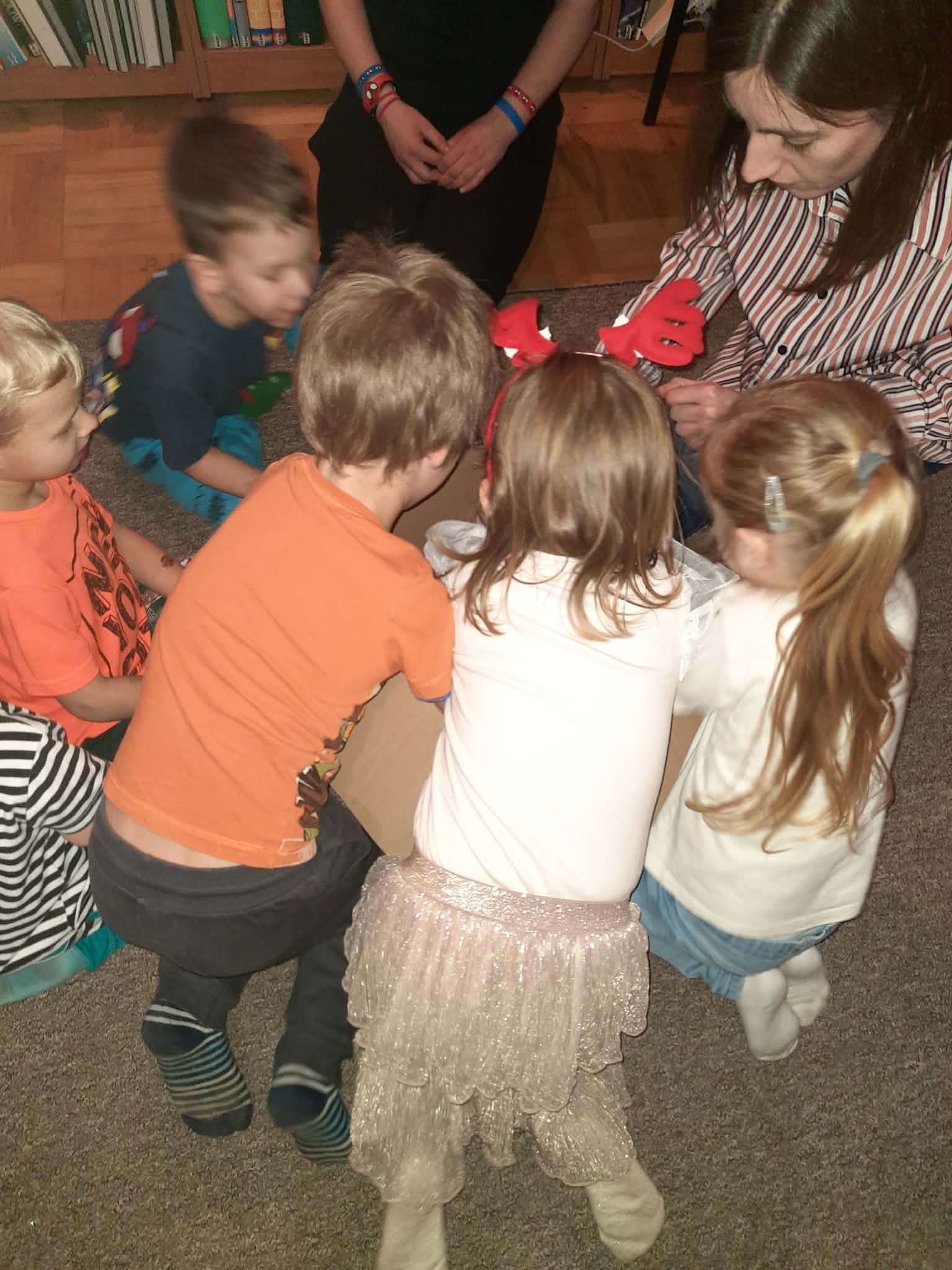 Podczas grudniowego spotkania z cyklu „Zaczytani przy kominku”, na prośbę Świętego Mikołaja, przeprowadziliśmy rekrutację nowych elfów do pracy w najwspanialszej fabryki świata. Sześcioro kandydatów z pełnym powodzeniem zaliczyło wszystkie testy: sprawdzian uwagi podczas słuchania czytanych opowieści, sprawdzian delikatności przy oglądaniu książek, sprawdzian przeszukiwania magazynów, pakowania prezentów oraz ozdabiania pierników. Podczas rutynowej elfiej gimnastyki sprawdziłyśmy też w jakiej kondycji fizycznej są nasze nowe elfy. Nad prawidłowym przebiegiem testów czuwał zespół Biblioteki Pedagogicznej w Płońsku, jak również rodzice przybyłych rekrutów.