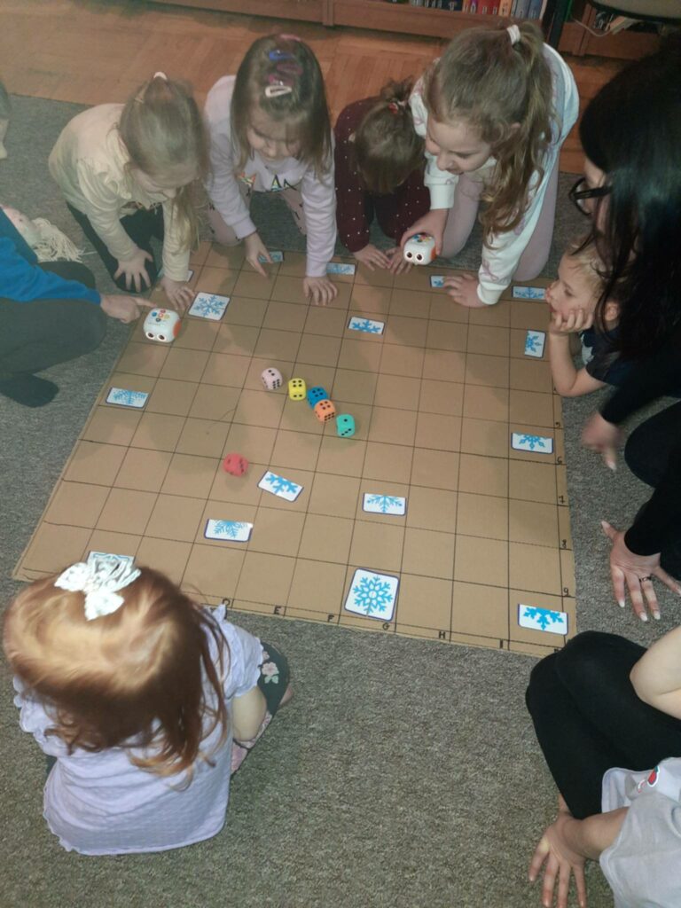 W kolejnej części spotkania dzieci poznały robota Zosię, z pomocą którego łączyły śnieżynki, ucząc się podstaw kodowania poprzez zabawę. Zajęcia te rozwijały logiczne myślenie, kreatywność oraz umiejętność współdziałania w grupie, a jednocześnie sprawiły dzieciom wiele radości.